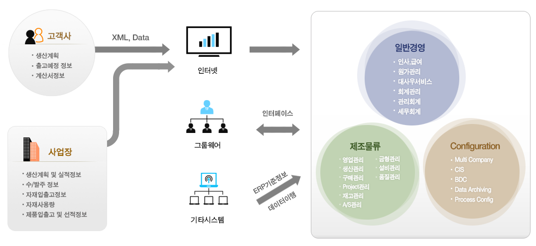 | 영업관리 | 판매계획관리, 수주관리, 출하관리, 매출관리, 수금관리, 영업분석 |
